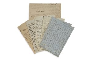DESBORDES-VALMORE Marceline (1786 - 1859) 12 L.A.S., 1833 - 1856 et s.d., à divers ; 32 pages la plupart in-8, 4 adresses. Paris 15 septembre 1833, à Pierquin, sur ses malheurs : la mort de Valmore père, elle a manqué être tuée sous un cheval qui l'a renversée ; elle s'inquiète pour son fils Hippolyte... 31 décembre 1841, à Caroline Branchu, belle lettre d'amitié, écrite aussi par son mari Prosper Valmore et par leur fille Inès. À sa fille Ondine, Mme Langlais. 16 avril 1850, nouvelles diverses ; à la suite, lettre d'Henri Langlais à ses parents. 25 juillet 1851, Prosper et Marceline Valmore à Ondine. 20 juillet et 11 août 1852, deux longues lettres de nouvelles (Ondine est à Saint-Chamond. 26 décembre 1854, à sa bonne voisine Mme Courtois, sur sa «triste solitude»... S.d. «Ma vie est d'attendre. N'avez-vous pas trouvé que j'étais bien lente à vous écrire ? Moi je l'ai trouvé qui ne console jamais du bien qui ne s'accomplit pas pour ceux qui me sont chers, et qui en font tant aux autres». Elle parle de la Plaintive, qu'elle a lue : «Je lui donnerais cinquante prix si c'était aux femmes d'en donner aux femmes, et aux pauvres d'en donner aux pauvres. Il y a dans ce livre tant de patience tant d'heures navrées, tant de luttes avec tout ce que nous savons bien des assauts renfermés. Mais tout l'argent du monde ne payerait pas les purs diamants qui sont là venant de ses vraies larmes»... Etc.