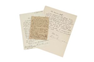 ÉLUARD Paul (1895 - 1952) 3 L.A.S. «Paul Eluard», 1930-1941 et s.d., à René GAFFÉ ; 3 pages in-12, grand in-8 et in-4, une adresse. Intéressant ensemble au grand collectionneur du Surréalisme. 3.XII.1930. «La collection de Littérature, j'hésite beaucoup à m'en séparer. Elle contient un grand nombre d'inédits que je ne saurais trouver ailleurs si j'en ai besoin. Je vais habiter rue Fontaine, l'atelier au-dessus de celui de Breton»... - 17 janvier 1941. Il n'a plus que très peu de tableaux : «Encore un très beau : la Bouteille de rhum (1913) [...] et quelques petites choses»... - Il est satisfait de leur échange : «UN peu étonné de l'estimation des Coquecigrues, mais c'est un livre qui m'enchante dans cet état»...