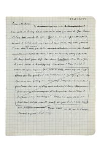 GREEN Julien (1900-1998) MANUSCRIT autographe, Courrier. Doubles des lettres, 1973 - 1993 ; 4 cahiers petit in-4 (22 x 17 cm), environ 350 pages écrites. Reliures cartonnées à dos toilé. Intéressant témoignage de la correspondance de l'écrivain. Cahiers d'écolier dans lesquels Julien Green a transcrit, de sa main, plus de 500 lettres ou messages qu'il adressa à ses correspondants à partir des années 1970. Dans les années 1970, après avoir fait son entrée à l'Académie française, l'écrivain avait pris l'habitude, occasionnelle semble-t-il, de garder une copie ou un brouillon (parfois signé de ses initiales) de certaines de ses lettres. Ces cahiers renferment les textes, parfois ébauchés, de plus de cinq cents messages et/ou lettres que l'écrivain adressa à divers destinataires, notamment Robert Gallimard, Marcel Jullian, Jean Mistler, Claude Lévi-Strauss, Robert Kanters, Pierre Gaxotte, José Cabanis, C. W. Barrett, Paul Morand, Marcel Arland, Henri Gouhier, G. de Diesbach, Jean Cazeneuve, le duc de Levis-Mirepoix, Hans Fronius, René Caillois, Jean d'Ormesson, Marcel Dassault, Daniel Pézeril, Maurice Rheims, le R.P. Carré, Federico Clerici, le père Bruckberger, Mme Sven Nielsen, Philippe Senart, Jacques Vier, Maurice Genevoix, Jacques Soustelle, Dominique Fernandez, Hector Bianciotti, Claude et Jean Mauriac, Angelo Rinaldi, Henri Troyat, Alain Rey, Maurice Druon, Jacques Chirac, Jean Mesnard, etc.
