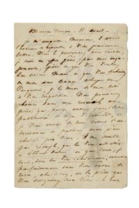 HUGO Victor (1802 - 1885) L.A.S. «Victor Hugo», Marine Terrace 11 avril [1854 ?], à Alfred BUSQUET ; 2 pages in-12 sur papier fin, adresse. Il l'autorise à «choisir dans mes recueils une pièce qui puisse entrer dans votre publication si digne d'intérêt [...] Il me semble par exemple, que les vers adressés à Albert Durer et qui sont, je crois, dans les Voix intérieures, entreraient parfaitement dans votre cadre. Au reste, choisissez, et la pièce que vous désignerez sera vôtre. Le but que vous vous proposez suffirait pour appeler toutes mes sympathies lors même qu'elles ne seraient pas déjà acquises depuis longtemps à votre esprit si clair et si distingué»... On joint un manuscrit autographe signé d'Alexandre DUMAS père, Le Conservatoire de musique (5 pages in-4), sur le Conservatoire de Naples. (Petit trou par corrosion d'encre)