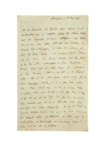 KOTZEBUE August von (1761 - 1819) L.A.S. «Kotzebue», Frankfurt 2 mai 1791, [à Ludwig Ferdinand HUBER, à Mainz] ; 2 pages in-8 remplies d'une petite écriture serrée ; en allemand. Très belle lettre, fort spirituelle. «Lors de l'exode des Juifs de l'Égypte, ils emportèrent, en guise de reconnaissance envers leurs bienfaiteurs, des récipients en or et en argent ; ils excusèrent leur action en indiquant qu'ils agissaient selon la volonté de Dieu. Si moi, en revanche, je voulais dire que Dieu m'avait dit de prendre le livre ci-joint, je mentirais. C'est pourquoi je vous le retourne. La parabole cloche de toute part d'ailleurs, car les écrits de [Johann Thimotheus] HERMES ne sont pas d'or, je ne suis pas juif, Madame [Therese] FORSTER n'est pas une Égyptienne, Mayence n'est pas située au bord de la Mer rouge et Francfort n'est pas Canaan. La parabole n'est juste que dans le sens où, moi aussi, je dois reconnaissance à Mme Forster pour toutes ces heures délicieuses que j'ai passées dans sa maison». Il charge son ami de lui exprimer sa gratitude : «dites-lui que j'attendrai patiemment qu'elle daigne se mettre à ma poursuite à cheval et en voiture. Je suis homme à me laisser volontiers rattraper, car j'erre sans but, et que je ne suis guidé ni par la colonne de feu de l'amour ni par celle ennuagée de l'amitié»...Puis il évoque Sophie de LA ROCHE : «Dans son coeur elle n'a toujours pas 60 ans. J'ai assisté une fois à un ballet où Amor rajeunissait les vieilles femmes à l'aide d'un grand moulin à vent. Comme j'aimerais que Mme La Roche se fasse traiter de la sorte, car je saurais très bien ce que je pourrais désirer d'autre. Lotte m'écrit qu'elle va épouser le propriétaire d'un commerce, qui serait une tête brûlée. Tout va bien entre elle et la tête brûlée ; toutefois, le père de la tête brûlée, sans doute une ancienne tête brûlée, a l'air moins décidé ; de sorte que je crains qu'à la fin tout le feu ne redevienne eau»... Il annonce l'arrivée de Friedrich Ludwig SCHRÖDER : «Nous lui avions construit un beau trône, sur lequel il était sensé de s'asseoir et nous voulions l'entourer avec déférence ; mais lui, il a escaladé le baldaquin, ce qui nous a fait rire»...
