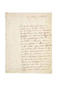 LAMARTINE Alphonse de (1790-1869) L.A.S. «Lamartine», Aix les bains, 17 juillet 1830, à Victor HUGO ; 4 pages in-4. Très belle et longue lettre sur leurs créations littéraires respectives. [Hugo a envoyé à Lamartine son poème intitulé À M. de Lamartine, alors que Lamartine vient de publier ses Harmonies poétiques et religieuses après son élection à l'Académie française le 1er avril et le triomphe de Hernani en février.] Lamartine est «ravi et reconnaissant» des vers du cher Victor qui n'a «jamais rien écrit de plus magnifique que cette immense comparaison en deux cent soixante et dix vers ! et je jouis de penser que mon nom sera attaché à ce monument de votre sublime imagination !». Son amitié le venge et le défend de «ces petites haines qui fermentaient autrefois entre des talents rivaux. On ne savait pas assez alors ce que nous savons vous et moi que le monde de la pensée est plus infini encore que le monde créé et que les conquetes d'un Colomb n'enlèvent rien à un autre, qu'il y a au contraire une solidarité sublime entre tous les esprits élevés et créateurs et que ce qui élève l'un élève aussi l'autre. C'est le principe de liberté appliqué à l'intelligence humaine !». Mais quant à ce «monde conquis» évoqué par Hugo, il s'en dit loin encore : «Je n'ai pas encore quitté la rive et j'aproche de quarante ans ; j'ai rêvé et je rêve encor mon voyage». Il conjure d'ailleurs Victor de ne rien lui cacher des imperfections de sa poésie, «pourvu que ça et là vous et quelques âmes poétiques et grandes y pressentent ce que je voudrais sentir et dire, c'est assez. Je suis content». Après un séjour à Aix, il compte se rendre au Saint-Bernard, puis à Côme et à Lugano avant de rejoindre Saint-Point. Il espère que Hugo continuera «à nous enrichir avec les frères d'Hernani. Si vous vous créez un théâtre vous aurez trouvé ce nouveau monde que tout le monde cherche». De son côté, Lamartine va se lancer «dans l'espace libre et éthéré de la Poésie dantesque si Dieu me prête vie et force puis je dirai le nunc dimittis. J'ai manqué mes poésies relligieuses je sais aujourd'hui comment j'aurais du les écrire, et combien je devrais en écrire»... Il demande si Hugo répugnerait à la publication de son poème, avant de conclure sur ces mots : «Aimons nous et accompagnons nous de nos voeux sur une mer où vous me dépassez déjà de si loin»...