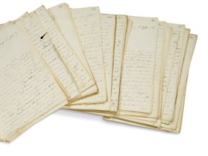 LAMARTINE Alphonse de (1790-1869) MANUSCRIT autographe signé «Lamartine», Histoire de la Russie, [1855] ; environ 820 pages in-4 (27 x 20,5 cm). Important manuscrit complet de cette Histoire de la Russie. Lamartine a publié son Histoire de la Russie en 1855 chez Perrotin, en deux volumes ; elle avait été annoncée comme un complément de son Histoire de la Turquie (1854), ce que confirme le manuscrit. Il l'a reprise en un volume au tome XXXI de ses OEuvres complètes (Paris, chez l'auteur, 1863). Le manuscrit, à l'encre brune sur beau papier vergé, présente de nombreuses ratures et corrections, et des additions interlinéaires ; quelques corrections supplémentaires ont été portées au crayon lors d'une relecture. Il est divisé en deux volumes, dont la pagination est parfois incohérente (Lamartine allant jusqu'à se tromper de centaine !). Lamartine a inséré dans son manuscrit une quarantaine de feuillets imprimés extraits d'ouvrages historiques (dont le Congrès de Vérone de Chateaubriand, et l'Histoire intime de la Russie de Schnitzler), sur lesquels il a porté des corrections. L'ouvrage est divisé en dix livres non titrés, les derniers non numérotés («mettez le chiffre», note-t-il), eux-mêmes divisés en chapitres en chiffres romains. La page de titre porte : «Histoire de Russie - Suite et complément de l'Histoire de Turquie - Par Lamartine» (au bas une série d'initiales qui restent pour nous mystérieuses). Le 1er volume comprend les livres suivants : I sur la Russie avant Pierre le Grand (p. 1-98) ;II consacré au règne de Pierre le Grand (p. 99-169) ; III de Catherine Ire à Élisabeth (p. 169 - 239) ; IV sur Pierre III (p. 239 - 345). Le 2e volume comprend les livres suivants : [V] («Livre 6ème») sur Catherine II (p. 1-124) [qui sera divisé en deux livres V-VI dans l'édition (ici 1-12 et 62-124)] ; [VII] («Livre VI») sur Paul Ier (p. 125 - 203) ; [VIII] consacré à Alexandre Ier (p. 204 - 285), ainsi que le livre [IX] (p. 286 - 386) ; [X] sur l'avènement de Nicolas Ier (p. 387 - 454) ; à la fin, Lamartine a noté : «Fin du 2e et dernier volume». Citons les dernières lignes, après la cérémonie de prestation de serment : «Le règne politique de Nicolas commença à dater de jour. Il est trop près de nous pour être aujourd'hui raconté. Avant de l'entreprendre il faut avoir jeté dans son tombeau à peine ouvert les partialités, les ressentiments et les sévérités légitimes que ses dernières années de règne ont accumulés avec tant de sang sur son nom. Même pour accuser l'histoire a besoin de justice et la justice a besoin de tems». Suit un «Épilogue de l'histoire de Russie ou Réflexions sur la guerre présente» (23 pages, ch. 1-23), qui semble être resté inédit. Lamartine réfléchit sur la guerre de Crimée. Nous en citons le début : «Le caractère général du règne de l'empereur Nicolas fut baigné la dernière année de sa vie l'immobilité du monde, non seulement en Occident mais en Orient. L'immobilité du monde pendant une certaine période de tems était pour la Russie non seulement un système mais un orgueil»..