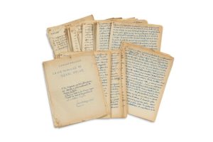 MAUCLAIR Camille (1872 - 1945) MANUSCRIT autographe signé «Camille Mauclair», La Vie humiliée de Henri Heine, 1929 ; 354 ff. in-4 (bords effrangés à quelques ff.), sous chemise demi-basane (usagée). Manuscrit complet de cette étude sur HEINE publiée en 1930. «Dans la même époque, presque aux mêmes dates, Henri Heine a formé, avec Edgar Poe et Charles Baudelaire, un trio de “poètes maudits”. Aucune injure ne leur a été épargnée»... Après l'Avant-propos, douze chapitres composent le texte : l'enfance et l'adolescence ; la vie d'étudiant de 1816 à 1822 ; la vie d'étudiant de 1823 à 1826 ; l'apostasie et la visite à Goethe ; Le livre des chants ; avant le départ pour Paris ; les débuts à Paris, la crise saint-simonienne ; la vie à Paris jusqu'en 1835 ; la période des pamphlets ; le voyage en Allemagne ; la période de honte ; le martyre. Sur la page de titre, Camille Mauclair a dédié le manuscrit à son épouse : «A toi, Suzanne, ma très chère femme, qui chantes si admirablement les Amours du Poète, je donne ce texte où j'ai dit avec impartialité les tares et les grandeurs de cet “outlaw” de génie»...