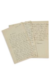 MOUNIER Emmanuel (1905 - 1950) L.A.S. «E. Mounier», 8 février [1940, à Francisque GAY] ; 12 pages in-8 (lég. fentes aux plis). Importante lettre confidentielle du fondateur de la revue Esprit au directeur de L'Aube, au sujet de l'engagement chrétien en politique. À la suite d'un article lettre de Touchard qui a suscité une vive réaction de Gay : «Ce qui dans la lettre, visait, sommairement, les “démocrates d'inspiration chrétienne”, vous savez bien [...] qu'ils ont extrêmement divers, et que l'Aube en a toujours pour nous représenté le meilleur. [...] Cela valait au plus, me semble-t-il, une petite engueulade privée, et deux mots de rectificatif dans une revue de presse». À propos d'Esprit, il reproche à Gay d'en faire «une sorte d'aile avancée, originale, courageuse de la démocratie chrétienne», ce qui ne correspond pas à la réalité, Esprit rassemblant des hommes très divers. Si Esprit et l'Aube se sentent des affinités certaines, il y a aussi des «divergences nettes. Pourquoi nous le cacher ? Les fautes communes aux démocrates le sont aussi aux partis démocrates chrétiens. Ils ont trop souvent compromis la subordination de la politique à la morale dans une sorte de moralisme dont nous sentons le besoin de dégager aujourd'hui une spiritualité d'un côté, une politique de l'autre plus nettes»... On joint une photographie de Jaromir FUNKE.
