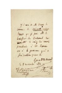 NERVAL Gérard de (1808 - 1855) P.A.S. «Gérard de Nerval», 8 novembre 1850 ; page in-8. Reçu …