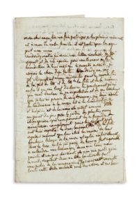 SAINT-PIERRE Bernardin de (1737 - 1814) L.A.S. «Bernardin de Saint Pierre», Paris, 1er juin 1807, à Mme Bernardin de Saint-Pierre, à Éragny-sur-Oise ; 2 pages et demie in-8, adresse. Jolie lettre à sa femme. Il donne des nouvelles à son «cher ange». Il a été invité à la bénédiction du mariage de M. Rigault et a assisté «à la messe et à la bénédiction à St Sulpice et de là ils m'ont amené diner au point du jour près le jardin des plantes, nous étions quinze qui composoient les 2 familles. De nouveaux compliments pour toi, surtout qu'ils ont bien regretté. Les deux conjoints de la fette repetent souvent que tu étois la cause de leur bonheur». Il a passé «un jour charmant. Je n'en suis parti qu'à la nuit, reconduit deux ou trois boulevards par une partie de la compagnie. J'ai parcouru ensuitte toute cette belle enceinte sous des arbres et sur la terre, dans un clair obscur délicieux, jusqu'aux Invalides». Après quelques commissions, il en vient à son travail : «Je me suis occupé à retoucher quelques notes inutiles du préambule de ma Chaumière indienne, et j'y ai suppléé par des éclaircissements sur les glaces flottantes, ils auront au moins le mérite de la nouveauté». Il a vu une jolie pièce au Vaudeville, Les Pages du duc de Vendôme : «ce sont pour la plupart des filles charmantes habillées en garçon, mais je te trouve encore plus aimable». Il se ménage «car je veux que tu me retrouve en bonne santé jeudy au soir. [...] Embrasse notre charmante Virginie, notre joyeux petit Paul, et ton excellente mère [...] Pour toi, tu m'auras tout entier». Une note sur la lettre indique qu'elle a été donnée par le «joyeux Paul» le 7 septembre 1821, et un billet attaché de M. Alph. de Fontvanne en indique la provenance. On joint une photographie de Lucien CLERGUE.