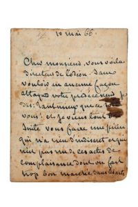 SAND George (1804 - 1876) L.A.S. «G. Sand», Palaiseau 10 mai [1866, à Charles de CHILLY] ; 4 …