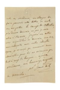 STAËL Germaine Necker, baronne de (1766 - 1817) L.A.S. «N. Stael de H», [Weimar] ce dimanche [18 décembre 1803, à Charlotte von SCHILLER à Weimar] ; 1 page in-8. Elle la prie de lui prêter le Camp de Wallenstein, «qu'on donne demain et que je veux relire à l'avance, j'espère vous aller voir aujourd'hui ou demain, vous serez mon interprète avec votre illustre époux, je ne conçois pas comment mon admiration pour lui ne m'inspire pas tout à coup la langue»... [Mme de Staël a assisté le 19 décembre à la représentation de Wallensteins Lager de Schiller ; le 21( ?), elle renvoie le livre à Charlotte von Schiller.]