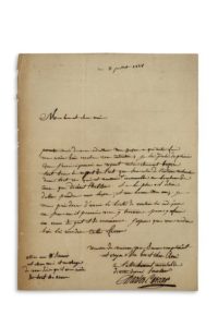 VALÉRY Paul (1871 - 1945) L.A.S. «ton P.V», Jeudi [10 avril 1919], à Pierre LOUŸS ; ¾ page in-4, enveloppe. À propos d'une connaissance qui a perdu la vue, et des épreuves de son Introduction à la méthode de Léonard de Vinci, publiée en Angleterre : «Quelle étrange histoire ! - C'est en quelque sorte l'inverse d'un miracle que tu m'apprends. Pauvre fille, dans la nuit instantanée !» Il espère qu'il ne s'agit que d'un décollement, mais pense qu'il n'y a pas grand espoir, et plaint son ami des ennuis qu'apportent ces situations pénibles... «Moi, je ne sais où donner de la tête. Je suis très mécontent de mon affaire de Londres ; les épreuves que j'attends (Vinci) n'arrivent pas ; j'ai des commandes en retard, etc. etc. Je vois combien les travaux nuisent au travail. J'étais sage, et me voici promu insensé !»... On joint une L.A.S. de l'architecte Charles PERCIER, 3 juillet 1828, à un ami (1 p. in-4).