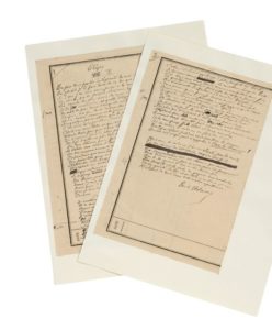 VERLAINE Paul (1844 - 1896) POÈME autographe signé «Paul Verlaine», Elégies IX, [1893] ; 2 pages grand in-8 au dos de papier administratif de l'Assistance publique (montage à fenêtre). Long poème amoureux, recueilli dans Élégies. Numéroté VII à l'encre, puis IX au crayon, le poème est en effet le neuvième des Élégies (Vanier, 1893). Il compte 66 vers, come Verlaine les a comptés dans la marge. Soigneusement mis au net à l'encre noire sur un papier d'hôpital, le manuscrit présente quelques ratures et corrections, dont un vers entièrement cancellé, et des variantes avec l'édition. «Tu fais tant partie intégrante de moi-même, Ou plutôt je le fais tant de ce toi que j'aime Si ! que j'en suis venu jusqu'à te confier, Ou, mieux, que tu perçois, sans moi, t'y convier. Les secrets les plus noirs de mon intelligence [...] Et puis, et puis la chair va, forte et l'esprit lent. Pas plus que l'intellect le sang n'est somnolent. Deux beaux yeux, des contours, ces sons, une démarche Eurent trop bientôt fait chavirer ma pauvre arche Et le naufrage fut total et dure encor Et toi-même tu m'es un des flots du décor Terrifiant (tout juste) où vint sombrer le drame De ma vie et qui peut s'appeler : Par la Femme ! [...] Ton conseil est le seul, tu gagnes mes combats, Et la gaieté de ton corps blanc et brun et rose M'absout de tout dans telle nôtre apothéose».