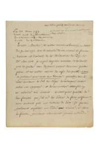 VOLTAIRE (1694 - 1778) L.S. «le Suisse V» avec 3 lignes autographes, aux Délices près de Genève 14 mars 1759, [à Bernard CHAUVELIN] ; la pièce est écrite par son secrétaire Jean-Louis WAGNIÈRE ; 2 pages et demie in-4. Au sujet de son conflit avec les fermiers généraux. Il a reçu la lettre de Chauvelin, «avec le mémoire de mes ennemis les fermiers generaux, et l'extrait de la déclaration du Roy [...] Je ne puis trop vous remercier de la bonté avec laquelle vous daignez entrer dans mes petites peines, et me rendre raison des refus du conseil [...] Permettez donc à votre serviteur le Job des Alpes de rebecquer encore contre son seigneur, et de lui envoïer cette fois cy un mémoire très sérieux. Ce n'est qu'en qualité de bon français que j'ai eu la bêtise de faire grifonner mon contract par un notaire de Gex ; je pouvais également emploïer un Tabelion suisse ; et alors les fermiers generaux n'auraient jamais entendu parler de moi ; je pouvais encor vous lacher les treize Cantons et les ligues grises ; nous sommes jaloux de notre liberté, nous autres Helvétiens, et nous sommes de bonnes gens, qui croïons que les traittés doivent être exécutés à la lettre ; ainsi, Monsieur, en qualité de Suisse, de Français et de votre ancien courtisan, j'ose encor vous supplier de revoir mon affaire pour la dernière fois. Made Denis est très sensible à l'honneur de votre souvenir ; nous sommes tous également attachés à votre personne et à tout ce qui porte votre nom ; mais, malgré toute ma sensibilité pour vous, je pense que l'eau du Rhône est aussi bonne que l'eau de la Seine et qu'il importera très peu à ma figure légère d'être mangée des vers du mont Jura, ou de ceux de la paroisse de St Roch ; tout ce qu'on a fait dans Paris depuis quelques années me parait le comble de la folie humaine, et je me croirais plus fou que tout Paris si à mon age je ne savais pas vivre dans la retraitte ; il est vrai que je regretterai toujours votre société et vos bontés; mais il faut savoir se retirer quand on n'est plus propre pour le monde. Au reste, que les fermiers Generaux m'assomment, ou non, mea virtute me involvo»... Il ajoute de sa main : «Pour le reste de ma vie et avec tous les sentimens d'un homme qui vous respecte et qui vous aime, le Suisse V». Correspondance (Pléiade), t. V, n° 5448.