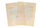 EINSTEIN Albert (1879 - 1955) L.S. et P.S. «A ; Einstein», Princeton 20 décembre 1946, à Robert-Jean LONGUET à New York ; 1 page in-4 dactylographiée chaque, la 1ère à son en-tête ; en anglais. Sur les problèmes internationaux et le danger atomique. [L'avocat et journaliste Robert-Jean LONGUET (1901 - 1987) était l'arrièrepetit- fils de Karl Marx ; il passa la guerre en Amérique.] Einstein lui envoie une déclaration qu'il a écrite pour exprimer ses opinions générales sur les problèmes internationaux actuels ; selon luii, on ne peut pas s'occuper de façon efficace de la question du danger atomique hors du contexte. «I enclose a statement I have written expressing my general opinions about the present international problems ; I wrote this statement instead of answering your specific questions. The reason is that, according to my belief, the question of atomic danger cannot be dealt with effectively in isolation»... La déclaration est en quatre points. 1. Il est dangereux d'accorder à l'armée n'importe quel contrôle sur le travail et les publications scientifiques... «In my opinion it is unjustified and fatal to grant to the military any control over scientific work and publication. Before the Fascist period no such intervention would have been considered by any government ; respect for cultural aims would not have permitted it in any nation». 2. Il est convaincu qu'une simple inspection ne peut assurer la paix. Aussi longtemps que la sécurité nationale restera fondée sur la force nationale militaire, une course aux armements sera inéluctable et aucun gouvernement n'obéira fidèlement à un engagement qui ne fait référence qu'à une simple restriction des armements. «I am convinced that mere inspection - even if not hampered by any veto-power - cannot secure peace. As long as national security remains based on national military power an armaments race is unavoidable and no government will obey loyally any undertakings that refer to a mere restriction of armaments». 3. Seul le transfert de la force militaire à un gouvernement supranational dont l'autorité morale et légale est fondée sur une représentation adéquate des états membres, peut assurer la paix. «Only the transfer of military power to a supernational government that bases its moral and legal authority on an adequate representation of the nations, can secure peace». 4. Ceci ne peut être obtenu par un développement progressif, mais seulement par une démarche décisive et radicale, étant donné que la préparation nationale pour la guerre et la recherche d'une régulation supranationale des problèmes s'excluent à tout instant et dans toutes les décisions dans tous les pays. «This can not be achieved through gradual development but only through a decisive step radical step, since national preparation for war and the quest for a supernational regulation of problems exclude each other in every single moment and in every single decision in every country»...