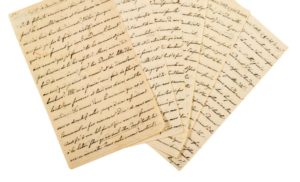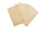 ALEXANDRE II (1818 - 1881). Tsar de Russie 4 L.A., «S.P.» [Saint-Pétersbourg] 1/13-5/17 janvier 1868, à Catherine Dolgorouki (Katia) ; 22 pages in-8 ; en français. Belles lettres d'amour fou à Katia. Cet ensemble regroupe quatre lettres de la correspondance amoureuse du Tsar Alexandre II à Catherine (Katia) Dolgorouki (1847 - 1922), témoins de cette extraordinaire histoire d'amour. Leur liaison débuta en 1866. Elle avait dix-huit ans, lui quarante-sept. En 1870, l'installation de Katia dans une chambre du Palais d'Hiver, au-dessus des appartements impériaux où résidait la Tsarine Marie Alexandrovna, fit un énorme scandale à la Cour. En 1872, elle lui donnait un fils, Georges, puis deux filles, Olga et Catherine. La Tsarine, depuis longtemps souffrante, mourut le 3 juin 1880, et quarante jours seulement après sa disparition, Alexandre fit de Catherine son épouse morganatique, lui conférant le titre de Princesse Yurievskaya. La vie légitime du couple fut de courte durée, car le Tsar fut victime d'un attentat à la bombe le 13 mars 1881. Ramené mortelllement blessé au palais, il agonisait quelques heures plus tard dans les bras de Katia. Devenue veuve, la princesse Yurievskaya s'exila en France à Nice, où elle mourut en 1922, emportant avec elle sa précieuse correspondance que le nouveau Tsar Alexandre III avait tenté de récupérer pour la détruire. Les lettres sont numérotées, et portent la date et l'heure, comme un journal de conversation. Elles sont rédigées principalement en français, avec quelques phrases en russe généralement dans l'alphabet latin, et un vocabulaire secret (comme les bingerles désignant leurs ébats érotiques). Par mesure de sécurité, elles ne comportent pas le nom de Catherine et ne sont pas signées. La formule finale en russe : «Mbou na bcerda» (à toi pour toujours), tient lieu de signature. 1er/13 janvier 1868, Lundi 9 h ½ du matin-mardi 2/14 janvier, 9 h ½ du matin, «N° 1» (10 pages). Ses voeux sont interrompus par l'arrivée d'une adorable lettre de son ange adoré, qu'il a dévorée avec bonheur ; ils ne forment plus qu'un seul être. «Je suis heureux que notre bingerle de l'autre soir ne t'ait pas fait de mal et que tu aies éprouvé la même jouissance inouïe, que toi tu sais toujours me donner, mais tu comprends que je n'aime pas à jouir seul et que par contre elle redouble pour moi quand je vois et je sens que tu la partages avec l'être qui t'appartient et qui ne respire que par toi»... à 4 h. de l'après-midi il raconte ses émotions en apercevant Katia sur le pont, et en échangeant un regard sur la Fotenka (il n'a pu ensuite retenir ses larmes à la messe) ; à 11 h. du soir il récapitule la suite : dîner avec les enfants, lecture du Drame intime, sortie à l'Opéra pour le premier acte de Norma (qu'il aime beaucoup par souvenir de jeunesse), thé, travail tout en pensant à l'être chéri : «je me sens tellement absorbé par mon adoration pour toi et j'éprouve une telle rage de me retrouver dans tes bras que je ne sais que devenir»... Il s'est consolé hier de son absence en passant en revue tous ses portraits et en relisant sa lettre de Naples, du jour de l'an 1867 ; leurs prières sont les mêmes ; «je sens, tous les jours davantage, que nous ne pouvons plus vivre l'un sans l'autre et la vie ne nous est chère que parce que nous voudrions la consacrer complètement l'un à l'autre. Je dois avouer que je ne me sens plus bon à rien [...] et je n'ai plus qu'une seule idée en tête - c'est toi et voudrais pouvoir te donner devant Dieu et les hommes le nom que je te donne dans mon coeur, depuis le 1 de juillet 1866, jour où je t'en ai fait cadeau et cela pour toujours. Tu dois comprendre, cher Ange, l'effet qu'a produit sur moi ton rêve d'avant-hier, où tu m'avais vu me couchant dans ton lit. Oh ! ce que j'aurais donné pour que cela puisse être un jour la réalité»... La confiance de Katia a fait d'elle sa conscience «Dieu soit loué que notre bingerle de l'autre soir, ne t'ait pas fait de mal, car il faut avouer que nous avons été bien déraisonables. Quant à la faiblesse que tu éprouves c'est ordinairement le cas après le m.d.t. et puis malheureusement tes insomnies ont dû y contribuer aussi et hier par-dessus le marché encore cet ennuyeux bal». Il prévoit une nouvelle rage d'être déraisonnable, demain. Le lendemain il doit assister à la messe pour les 18 ans de son fils Alexis ; il anticipe avec joie la délicieuse surprise qu'elle lui prépare : «je ne puis penser à rien d'autre qu'à notre bingerle, que nous adorons et qui fait notre bonheur [...] je me sens aimé comme moi je t'aime, avec passion, râge et folie»...Mardi 2/14 janvier 1868, 11 h ½ du soir «N° 2». Son âme déborde d'amour et de tendresse : «je me sens tout imprégné de bonheur, après notre délicieuse soirée, où nous avons joui l'un de l'autre, et à deux reprises, comme des fous. Tu as vu et senti toi-même ce qui se passait en moi, pendant nos bingerles, comme je l'ai aussi vu dans l'expression de tes adorables yeux et dans tous les mouvements de ton adorable corps. Comment puis-je après