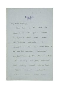 CHURCHILL Winston (1874 - 1965) L.A.S. «Winston S. Churchillé, Tring Park 1er Février 1903, à son cher STRONG ; 1 page et demie in-8 à en-tête Tring Park, Tring ; en anglais. Il le prie de l'éclairer sur l'année 1816 : la Grande Guerre était finie, Castlereagh voulait maintenir l'impôt de guerre, et il parla d'ignorante impatience de l'imposition («ignorant impatience of taxation») mais la gauche s'opposa fermement à cette politique, et à la place obtint de grandes réductions. Il aimerait avoir plus d'informations sur ce point, et prie Strong de l'aider de ses encyclopédies et se son savoir...