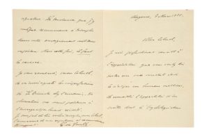 GAULLE Charles de (1890-1970) L.A.S. «C. de Gaulle», Mayence 7 mars 1925, au colonel Émile MAYER ; 4 pages in-8. Importante lettre sur ses premiers écrits militaires. Il est «profondément touché» par «l'appréciation que vous avez eu l'amabilité de consacrer à ma modeste étude» [La Discorde chez l'ennemi, 1924]. Ce n'est pas un honneur médiocre, de recueillir l'approbation d'un maître dont la Psychologie du Commandement fait littéralement et justement autorité. Vous discernerez ce qui est par excellence “la question” et vous l'éclairez d'une lumière philosophique hélas ! bien rare en la matière. Notre armée a bien besoin, mon Colonel, de leçons comme celles que vous donnez. Puisse-t-elle en profiter, et ne pas transposer aveuglément dans sa forme nouvelle des systèmes de commandement qui, depuis cent ans déjà ne répondent plus aux exigences du temps, mais qui, désormais seraient simplement funestes». Il lui signale «un court article sur l'orientation de notre doctrine de guerre» qu'il vient de publier dans la Revue militaire française du 1er mars [Doctrine a priori ou doctrine des circostances] : «La tendance que j'y souligne recommence à triompher dans notre enseignement militaire supérieur. Mais cette fois, il faut la vaincre». Il remercie le colonel de lui avoir «indiqué les imperfections dans La Discorde chez l'ennemi. Vos observations me seront précieuses si l'ouvrage est par hasard réédité»... [Cet article de De Gaulle est parvenu jusqu'au maréchal Pétain par le biais du colonel Laure, conseiller du maréchal, et Pétain en fut suffisamment impressionné pour rappeler de Gaulle de son poste à Mayence et lui offrir une affectation dans son propre cabinet.]