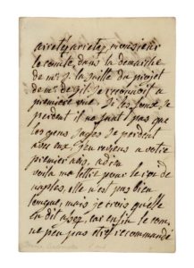 MARIE-ANTOINETTE (1755 - 1793) L.A., à un comte [de MERCY-ARGENTEAU ?] ; 1 page et demie in-8. Curieuse lettre. «Arretéz, arretez, monsieur le comte, dans la demarche de Mr J. la suitte du projet de Mr de Gil. Je reconnoit a premiere vue, si les foux se perdent il ne faut pas que les gens sages se perdent avec eux, j'en reviens a votre premier avis»... Elle lui donne sa lettre «pour le roi de Naples, elle n'est pas bien longue, mais je crois qu'elle en dit assez, car enfin le com. ne ne peu pas être recommandé comme le chevalier d'Assas. J'oubliois de vous dire qu'il est a propos que le com. ne me fasse pas de remerciements, cela excite la curiosité et puis les demandes».