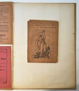 LES TEMPS NOUVEAUX Paraissant tous les Samedis avec un supplément littéraire N° 1, 4-10 mai 1895-n° 17, 24-30 août 1895. Les Temps nouveaux, de tendance anarchiste, parurent sous différentes formes jusqu’en 1914. Paris. Textes de René Changhi, H. Duckmann, A. Gauthey, André Girard [Max Buhr], Jean Grave, A. Hamon, Pierre Kropotkine, Léon Leclerc, F. Naudier, Nicolet, Fernand Pelloutier, Élisée Reclus, Vindex, etc. 17 numéros en 17 livraisons en 1 vol. in-folio relié. Joint : – 8 brochures : Conférence faite à Londres par Pierre Kropotkine (Les Temps nouveaux, 1894, 64 p.) ; – Le Principe Anarchiste par Pierre Kropotkine (Les Temps nouveaux, 1913, 8 p.) ; – Les Ouvriers, Les Syndicats & les Anarchistes par E. Armand (L’endehors, 16 p.) ; – Le Premier Mai, Historique, Résultats, But (La Publication sociale, 16 p.) ; – Élisée Reclus en Belgique : sa vie, son activité 1894-1905 par Hem Day (Paris-Bruxelles, Pensée et Action, 1956, 32 p.) ; – Mon point de vue de l’Anarchisme Individualisme par E. Armand (Orléans, Par delà la mêlée, 1916, 12 p.) ; – Pages choisies d’Aristide (1909, 32 p.) ; – Discours de Aristide Briand : La Grève générale & la Révolution avec un portrait de Briand (Le Havre, Les Éditions à Bon Marché, 1899, 16 p.) ; – 1 tract manifeste : « Lettres aux Abonnés des « Temps Nouveaux » (1916, 4 p.).