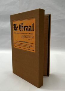LE GRAAL Cahier mensuel d’Art, d’Occulte et de Mystique N° 1, janvier 1912-n° 5, mai 1912. Paris, Éditeurs : Hector et Henri Durville, Gérant : Jean Desjobert. Textes de F.-Ch. Barlet, René Dauriam, Pierre Fons, P.-B. Gheusi, Ch. Kloster, Victor-Émile Michelet, Han Ryner, Taliésin, etc. Collection complète. 5 numéros en 5 livraisons brochées in-8 sous emboîtage + 1 couverture d’un numéro spécimen comportant le programme de la rédaction. Notes manuscrites de Vasseur (3 ff.).