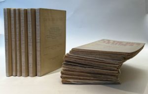 LA VIE DES LETTRES Collection de poèmes et de proses puis La Vie des Lettres et des Arts N° 1, avril 1913-n° 6, juillet 1914 ; Nouvelle série : n° 4, avril 1921 ; n° 8, février 1922 ; n° 9, avril 1922 ; n° 12, s.d.-n° 17, s.d. ; n° 19, s.d.-n° 21, 1926. Manque les n° 1, 2, 3, 5, 6, 7, 10, 11 et 18 de la Nouvelle série. Paris Neuilly, Éditions Jacques Povolozky et Cie, Directeurs : Nicolas Beauduin et William Speth. Textes de Paul Adam, Pierre Albert-Birot, René Allendy, Louis Aragon, Marcel Arland, Maurice Barrès, Nicolas Beauduin, André Breton, Jean Cassou, Joseph Delteil, Paul Dermée, Édouard Dujardin, Paul Éluard, Jean Epstein, Paul Fort, Henri Ghéon, André Gide, Albert Gleizes, Claire Goll, Ivan Goll, Henri Hertz, Max Jacob, Francis Jammes, Fernand Léger, André Lhote, F.-T. Marinetti, O.-V. de L. Milosz, P. Mondrian, Henry de Montherlant, Paul Neuhuys, Francis Picabia, Henri Pourrat, Henri de Régnier, Pierre Reverdy, Juliette Roche, Léonce Rosenberg, Jean Royère, Han Ryner, Saint-Pol Roux, Henri Sauguet, Marcel Sauvage, Alphonse Séché, Philippe Soupault, William Speth, Tristan Tzara, Théo Varlet, Francis Vielé-Griffin, Walt Whitman. Bois gravés par Norah Borges, Chana-Orloff, P.-L. Menon, Colette Nel-Demouchel, Joseph Sima. 6 livraisons in-8 brochées + 12 livraisons in-4 brochées. Notes manuscrites de Vasseur (2 ff.). Quelques exemplaires de la Nouvelle série sont légèrement défraîchis.