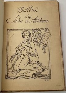BULLETIN DU SALON D’AUTOMNE N° 1, avril-mai 1916-n° 6, avril-juillet 1917. Paris, Gérant : Robert Bonfils. Textes de Théodore Duret, Élie Faure, Frantz Jourdain, Robert de Montesquiou, René Piot, Louis Vauxcelles, etc. Illustrations de Robert Bonfils, Pierre Bonnard, Maurice Denis, Maxime Dethomas, Dunoyer de Segonzac, Georges d’Espagnat, Othon Friesz, Charles Guérin, Marcel Lenoir, Aristide Maillol, André Mare, Bernard Naudin, A. Steinlen, Édouard Vuillard, etc. Collection complète. 6 numéros en 6 livraisons en 1 vol. in-8 relié (couvertures conservées). Notes manuscrites de Vasseur (1 f.). Joint : – 1 carton d’invitation pour le vernissage du 12e Salon d’automne le 31 octobre 1919, avec sur toute la hauteur un dessin d’Albert Marquet. Rare complet.
