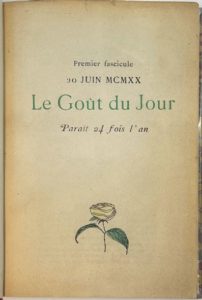 LE GOÛT DU JOUR N° 1, 20 juin 1920-n° 13, 20 décembre 1920. Paris, Éditeur : François …