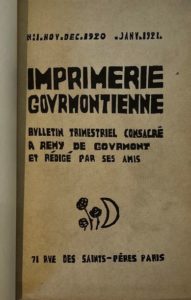 IMPRIMERIE GOURMONTIENNE Bulletin trimestriel consacré à Remy de Gourmont et rédigé par ses …