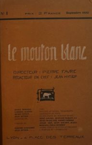 LE MOUTON BLANC Revue mensuelle puis, Organe du Classicisme moderne 1ère série : n° 1, septembre 1922-n° 4, janvier 1923 ; 2e série : n° 1, septembre-octobre 1923-n° 2, novembre 1923 + dernier n° non numéroté, novembre 1924. Lyon, puis Maupré par Charolles (Saône-et-Loire), Directeurs : Pierre Favre puis Marthe Esquerré, Rédacteur en chef : Jean Hytier. Textes de Gabriel Audisio, Georges Chennevière, Benjamin Crémieux, Marthe Esquerré, Paul Fierens, Waldo Frank, Franz Hellens, Jean Hytier, René Lalou, René Maublanc, Adrienne Monnier, Francis Ponge, Mario Puccini, Jules Romains, Stefan Zweig, ertc. Collection complète. 7 numéros en 7 livraisons en 1 vol. grand in-8 relié. Joint : – 1 billet autographe de Jules Romains (1926) à Édouard Dujardin, sans rapport avec la revue. Il manque La Belle sorcière de Jean Hytier (10 p.) édité par Le Mouton blanc et annoncé en document joint par Vasseur.