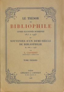 Carteret (Louis). Le Trésor du Bibliophile. Livres illustrés modernes. 1875 à 1945. Paris, Carteret, 1946-1948. 5 volumes grand in-8, brochés. 2 ff., 305 pp.; 261 pp.; 328 pp.; 412 pp.; 207 pp. Fac-similés dans le texte. Bon état général. T....