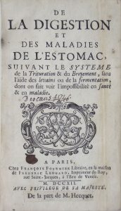 [Hecquet (Philippe.)]. De la Digestion et des Maladies de l'Estomac, suivant le systeme de la Trituration & du Broye- ment, dans l'aide des levains ou de la fermentation, dont on fait voir l'impossibilité en santé & en maladie. Paris, Fournier,...