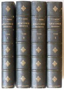 Sappey (Ph. C.). Traité d’Anatomie Descriptive avec Figures intercalées dans le texte. 4e édition revue et améliorée. Paris, Delahaye et Lecrosnier, 1888. 4 volumes in-8, reliure demi-chagrin vert, dos à 5 nerfs orné. Petites éraflures,...