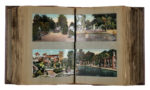 Corposissima raccolta di oltre 300 ricordi di viaggio relativi alla crociera intrapresa nel 1926 dal marchese Giulio de Montemayor, professore presso l'Università di Napoli e avvocato erariale. Dépliants, molte lettere, fotografie (di piccolo formato) e cartoline in b/n e a colori, menu di bordo, telegrammi, biglietti d'ingresso, conti e curiosità, conservate nelle pagine cartonate di un grande raccoglitore rilegato, con piatti in legno e dorso in pelle. Dimensioni 170x250x(h)110 mm. (1)