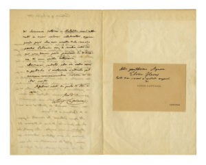 Capuana Luigi, 1 lettera autografa firmata e 1 biglietto da visita autografo. Lettera datata 1909.