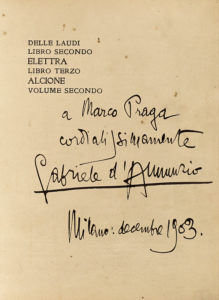 D'Annunzio Gabriele, Dedica autografa su libro Laudi del cielo del mare della terra e degli eroi (vol. II). Milano, Treves 1904.
