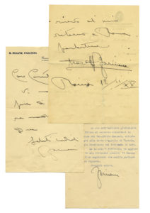 Farinacci Roberto Roberto, Raccolta di 6 lettere (autografe e dattiloscritte con firme autografe) e 1 biglietto da visita con annotazione autografa. Carte datate anni ’30.