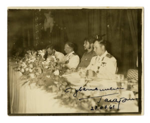 Gagarin Juri, Fotografia con annotazione e firma autografa di Gagarin. Datata 27 luglio 1961.
