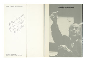 Guttuso Renato, Dedica autografa su libro Comizio di quartiere (Firenze, 15 ottobre-19 novembre 1977). Firenze: Stamperia della Bezuga, [1977].