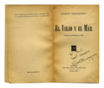 Dedica autografa a penna grigia, apposta sul frontespizio del libro El Viejo y el Mar, edizione argentina, datata 1954, del celebre The Old Man and the Sea (1951). Alcuni segni del tempo alla brossura. (1)