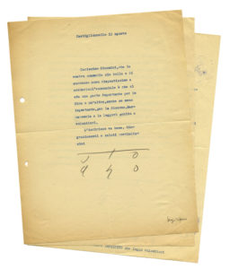 Dattiloscritti a inchiostro blu, Firma a matita grigia. 3 carte scritte al recto con fori di classificatore al margine sinistro. Dimensioni: 280x220 mm. (3)