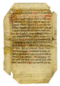 SI AGGIUNGE: Foglio pergamenaceo (210x315 mm). XVI secolo. Frammento di graduale recuperato da legatura (leggibile al recto). Scrittura gotica con notazione musicale quadrata su tetragramma. (2)