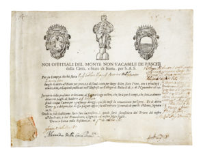 1 Monte del Monte de Paschi di Siena. Datato 1 ottobre 1657.