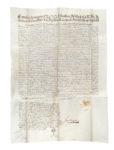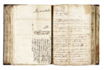 Manoscritti a inchiostro bruno. Oltre 60 documenti in carta e pergamena (1 a stampa). Testi in italiano e latino. Alcune pergamene sono ripiegate. Documenti originali e in copia dell'epoca. La raccolta contiene atti notarili, lettere (una del cardinale Caracciolo), bolle, informative, ricevute di pagamento, benefici ecc. E' presente anche un piccolo disegno con la pianta della chiesa e i suoi dintorni. Alcuni sigilli in carta e pergamena conservati. Il lotto comprende anche una xilografia (datata a inchiostro 1640) che raffigura il "vero ritratto di S. Maria del Faro di Posillipo / All'Ill. mo Vincenzo Medici Proelettore dell'Abatia [...]" (con difetti). Legatura in piena pelle con fregi in oro. Lacci non più conservati. Al piatto superiore è impresso: "S.ta / Maria / del / Faro". Dimensioni della legatura: 285x210 mm. (2)