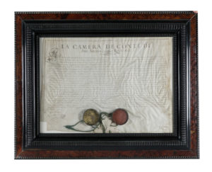 Grande pergamena con sigillo in ceralacca e intestazione Camera dei Conti. Datata 30 agosto 1694.