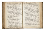 Primo titolo: "Miscellanea scientifico - industriale". Manoscritto cartaceo tascabile a inchiostro nero. Legatura cartonata coeva. Circa 170 pagine scritte, cui seguono molte bianche. Condizioni più che buone. Allegato indice fino alla voce 227 (su 240) in quadernetto separato. Dimensioni 100x125 mm. Il manoscritto elenca 240 ricette e istruzioni per le più svariate preparazioni alimentari, industriali, chimiche, farmaceutiche ecc. Alcune sono veramente curiose. Troviamo tra le altre: rimedi per eliminare la nicotina dalle pipe; argentatura degli specchi; ricette del vino e del burro artificiale; cerotti vescicolatori; inchiostro per il bucato; pasticche di catrame; ricette di panforti, cavallucci e ricciarelli; scolorina; impermeabilizzazione di tessuti; febbrifugo Montanari; acqua turca; elixir di vita; droghe per il Vermut; mistura anti-odontalgica; plastica fatta con colla da falegname; vino di Champagne; vernice trasparente; ceralacca; liquore stomatico; inchiostro indelebile; absinthe; acqua antisterica; nichelatura dei metalli; panettone di Milano; smalto per vetri; pila a secco ecc. Non manca la ricetta di un ricco impasto per ingrassare i polli. Secondo titolo: "Relazioni chimiche". Manoscritto cartaceo a inchiostro nero e blu. Legatura cartonata coeva. 193 pagine scritte, inframmezzate da sette bianche, cui segue un indice alfabetico. Condizioni più che buone. Dimensioni 145x200 mm. Il manoscritto è diviso in due sezioni. La prima, di 165 pagine, elenca metodi di preparazione di moltissimi composti chimici e descrive vari sistemi di analisi; la seconda, di 27 pagine, elenca una sessantina di ricette e istruzioni per preparazioni galeniche dai nomi più svariati, e a volte inquietanti. (3)