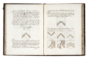 Manoscritto cartaceo a inchiostro bruno. Carte 195 scritte, [27] bianche all'interno del testo. In ottimo stato. Testo in italiano con moltissimi disegni a penna bruna finemente eseguiti. Legatura coeva, rigida, in pelle, con segni del tempo. Dimensioni 150 x 210 mm. (1)