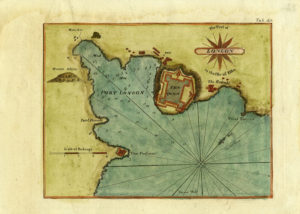 Incisione in rame. mm 150x185. Foglio: mm 155/175x198/243. Tavole 64 (Port of Ferraro), 65 (St. Pierre de Campo in the Isle of Elba) e 66 (The Port of Longon in the Isle of Elba, più un'edizione posteriore in coloritura di quest'ultima) siglate al margine inferiore a destra "J.S. sc" per John Stephenson, dal volume di Heather William, The New Mediterranean Harbour Pilot: Containing Two Hundred and Twenty-four Accurate Plans of the Principal Harbours, Bays, Roadsteads, and Islands in the Mediterranean Sea, Including Those in the Gulf of Venice, Archipelago, Sea of Marmora, & the Levant, pubblicato a Londra da J. W. Norie nel 1814. (4)