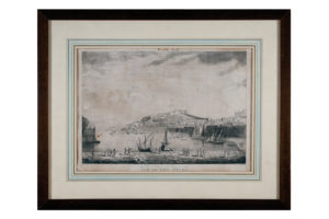 Acquatinta. mm 340x490. In alto, oltre la figura, la scritta a penna e inchiostro bruno "ILE DELBE", in controparte. La veduta mostra Portoferraio dalla parte del molo e della Torre di Passante, che scorgiamo all'estrema sinistra. In primo piano alcune figure sul molo, con due velieri in attracco. Il profilo segmentato della costa avanza in corrispondenza della porta medicea, e prosegue verso il Molo del Gallo. In secondo piano si scorge l'agglomerato urbano che culmina nel forte Falcone. (1)