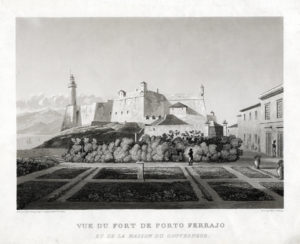 Bulino. mm 192x277. Foglio: mm 205/255x285/340. Cinque tavole dalle serie di otto Elbese Scenery a series of Pictoreque Views in the Island of Elba;...From Drawings taken on the spot by Sir Richard Colt Hoare, provenienti da A Tour Through the Island of Elba.[...] illustrated with Views Drawn from Nature... pubblicato per la prima volta nel 1814 e nuovamente nel 1828. SI AGGIUNGE: Thalès Fielding (1793-1837), VUE DU FORT DE PORTO FERRAJO et de la Maison du Gouverneur. 1826. Peint par Copley-Fielding, d'après l'esquisse de M. le C.te de Forbin. Bulino. mm 275x336. (6)