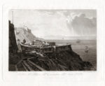 Acquaforte e acquatinta. mm 180x240. Foglio: mm 260x365. Coppia di vedute dove la prima raffigura il giardino del Palazzo del Governatore con Napoleone in primo piano e, sullo sfondo, il forte Stella, il faro, il mare e le montagne; la seconda, presa da un lato del forte Stella, raffigura l'intera spianata comprendente la Palazzina napoleonica dei Mulini, sullo sfondo in alto a sinistra, parte del forte Falcone e sulla destra il mare con due velieri e in lontananza il profilo della Corsica. SI AGGIUNGONO: Hermitage of Monserrato / Chapel of Santa Catarina. Incisione in rame. mm 217x278. Foglio: mm 230x290. Due tavole tratte da Richard Hoare A Tour through the Island of Elba illustrated with views drawn from nature, disegnate da I. Smith e incise da I. Powell e Laetitia Byrne, pubblicate a Londra da I. Smith nel 1814. Vi sono raffigurati il piccolo santuario elbano al centro tra le rocce, e la chiesetta con sullo sfondo il Volterraio e il mare. (4)