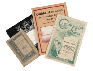 Compongono il lotto: 1) Foresi Mario, Vittore Hugo all'isola d'Elba. Firenze: pei tipi di S. Landi, 1889; 2) Id., Canzoniere. Firenze: Casa Ed. Oscar Sersale, 1886; 3) Id., Canti popolari italiani, per canto e pianoforte, canto e chitarra, pianoforte solo. Raccolti e ridotti da Mario Foresi. Roma: Perino, 1893-94. Elenco completo disponibile su richiesta. Lotto non passibile di restituzione. (7)